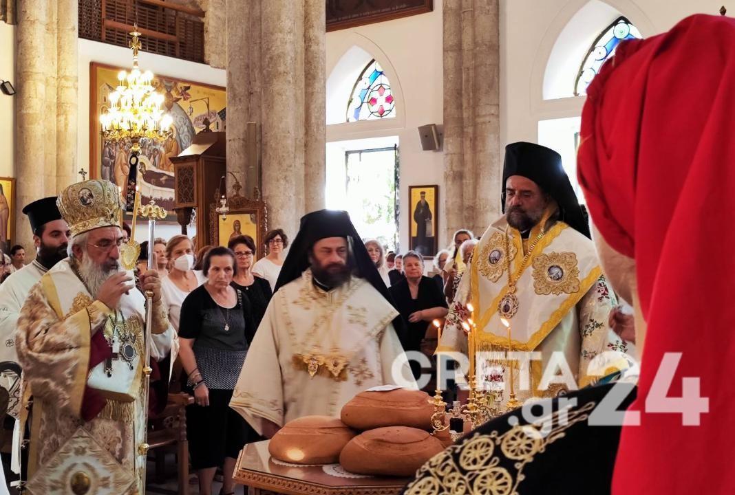 Πλήθος κόσμου βρέθηκε νωρίς το πρωί στον Καθεδρικό ναό του Αγίου Τίτου όπου τελέστηκαν Όρθρος και Αρχιερατική Θεία λειτουργία, προεξάρχοντος του Αρχιεπισκόπου Κρήτης κ.κ. Ευγενίου.