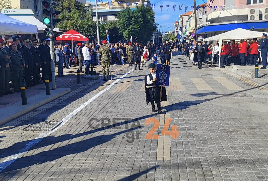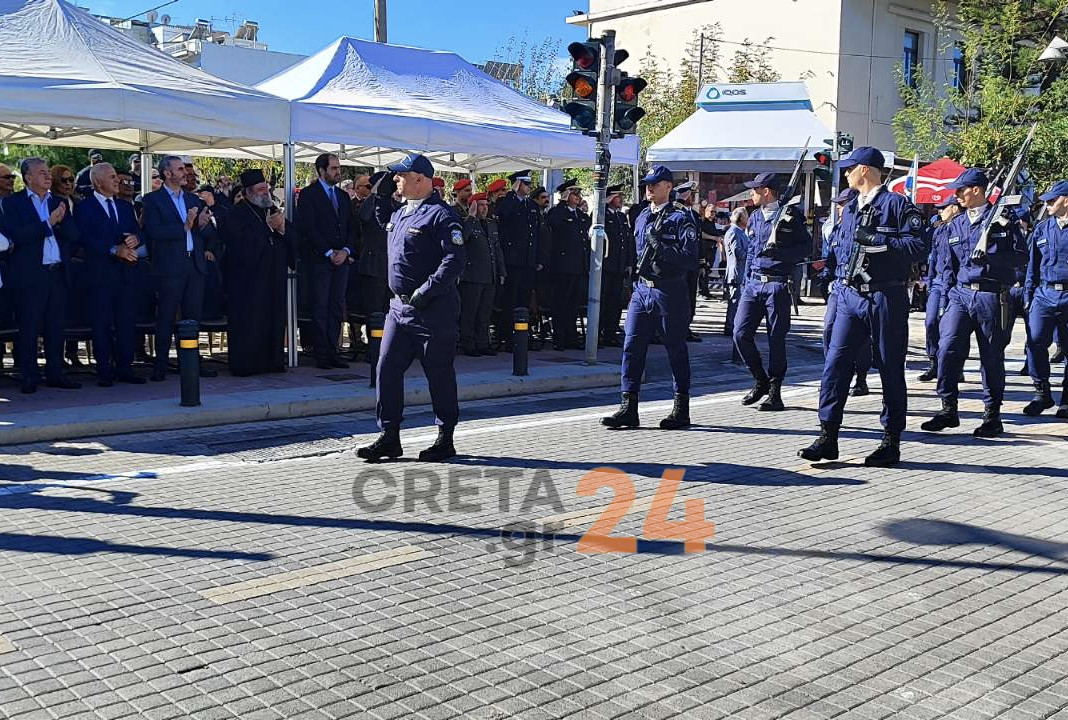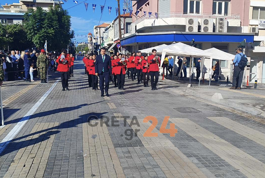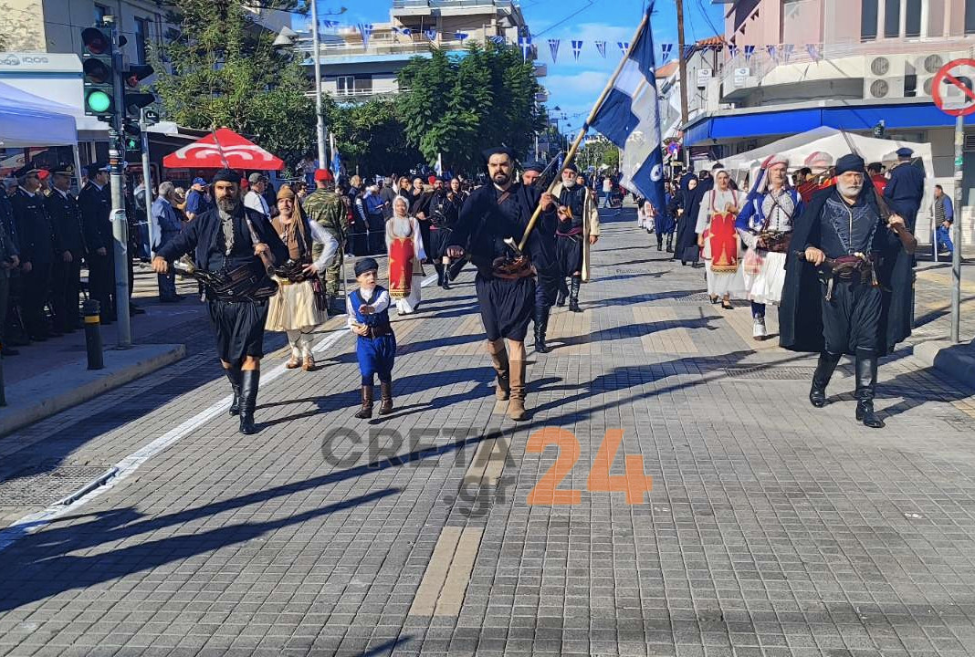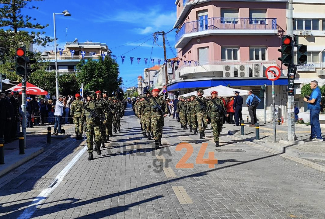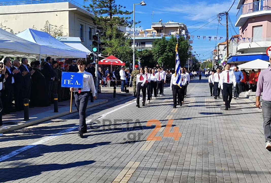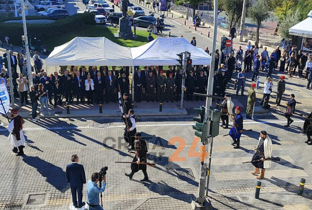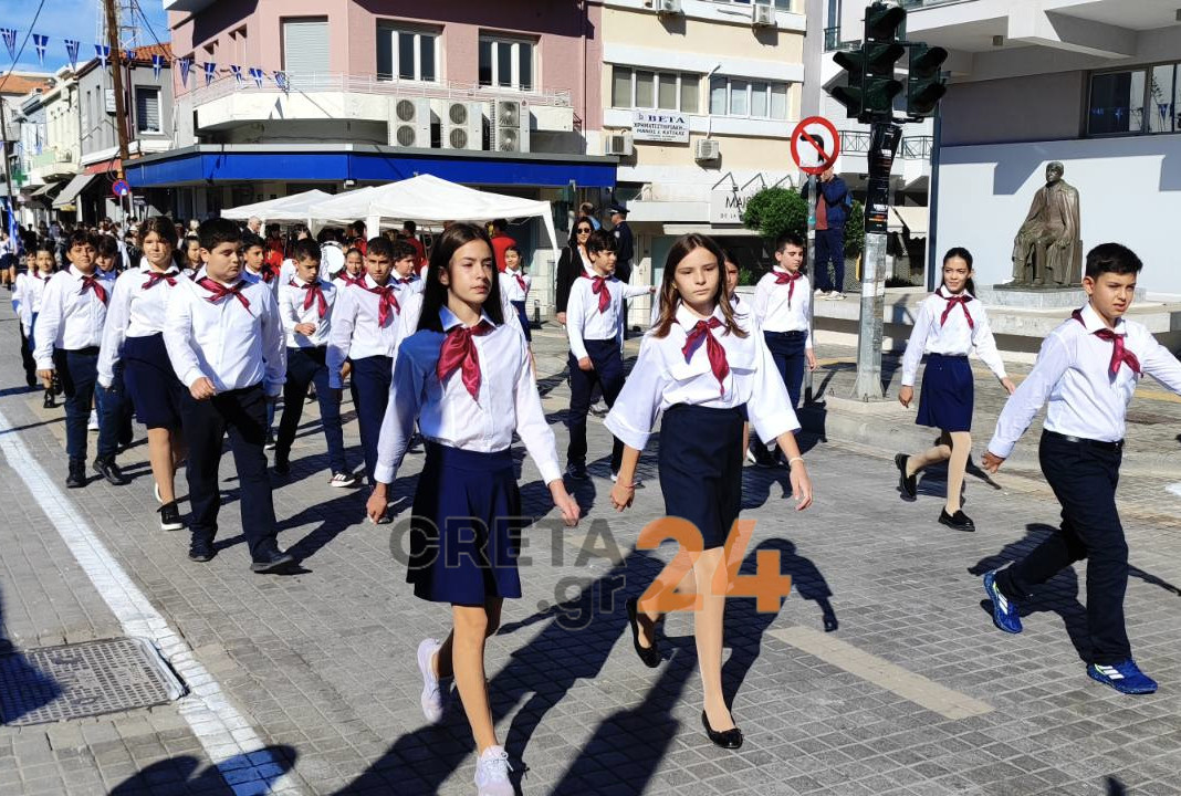 Μαθητές, μέλη πολιτιστικών συλλόγων και στρατιωτικά τμήματα παρέλασαν το πρωί στη λεωφόρο Κουντουριώτη στο Ρέθυμνο.