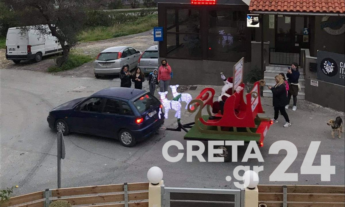 Viral έχουν γίνει οι εικόνες με το έλκηθρο του Αϊ Βασίλη, που δημοσίευσε το Creta24.
