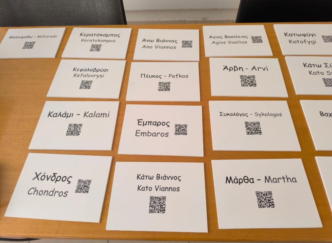 Πρόκειται για πινακίδες, οι οποίες περιλαμβάνουν ένα γραμμωτό κωδικό δύο διαστάσεων (QR code), ο οποίος μπορεί να σαρωθεί από ειδικό λογισμικό κινητών συσκευών (τηλέφωνο αλλά και tablet), ανοίγοντάς αυτόματα σε ειδική ιστοσελίδα του Δήμου Βιάννου, ώστε να πληροφορηθεί ο ενδιαφερόμενος σε δύο γλώσσες (Ελληνικά – Αγγλικά ) για τις συγκεκριμένες περιοχές και τα αξιοθέατα.
