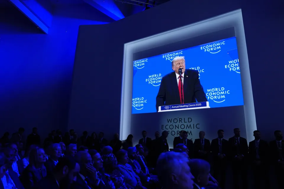 Ο πρόεδρος των ΗΠΑ Ντόναλντ Τραμπ μιλά στο οικονομικό φόρουμ του Νταβός στην Ελβετία στις 21 Ιανουαρίου, 2026 – AP Photo/Evan Vucci