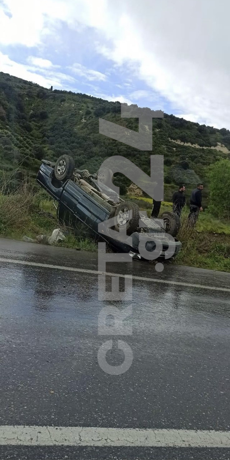 Ένα αγροτικό αυτοκίνητο, κάτω από αδιευκρίνιστες συνθήκες, βγήκε από την πορεία του και ανετράπη.