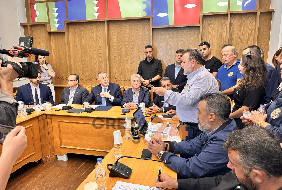 Με ένα «θερμό» επεισόδιο μεταξύ του δημάρχου Μινώα Πεδιάδας Βασίλη Κεγκέρογλου και του υφυπουργού Υποδομών και Μεταφορών Νίκου Ταχιάου ξεκίνησε η σύσκεψη για την ενημέρωση για το ραντάρ του αεροδρομίου στο Καστέλι.
