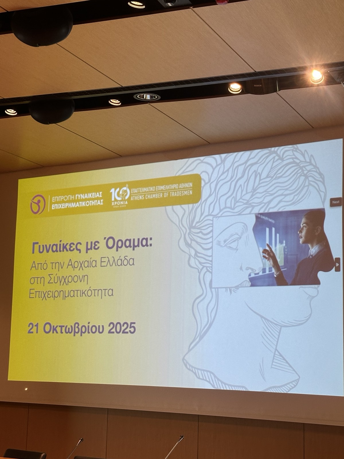 Στην εκδήλωση “Γυναίκες με Όραμα: Από την Αρχαία Ελλάδα στη Σύγχρονη Επιχειρηματικότητα” που οργάνωσε η Επιτροπή Γυναικείας Επιχειρηματικότητας του Επαγγελματικού Επιμελητηρίου Αθηνών έδωσε το “παρών” η Τομεάρχης Μικρομεσαίων Επιχειρήσεων του ΠΑΣΟΚ, Βουλευτής Ηρακλείου Ελένη Βατσινά.