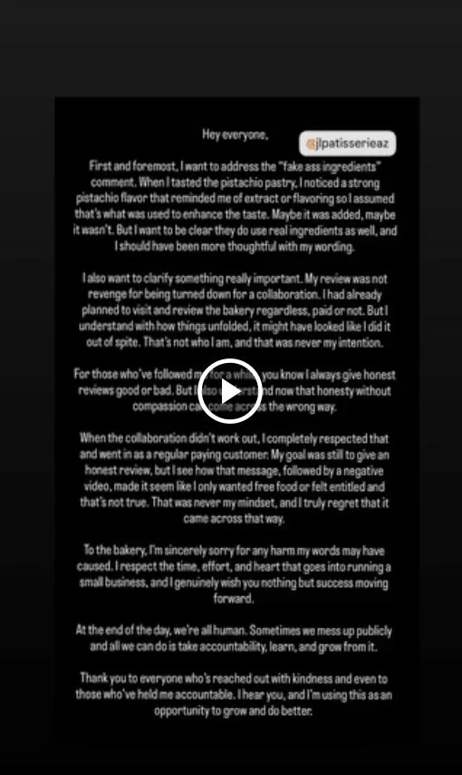 @jlpatisserie I will forever dedicate my time and energy to continue to make it right to the people who value my teams hard work and have respected us and supported us since day one. #review #influencer #bakery