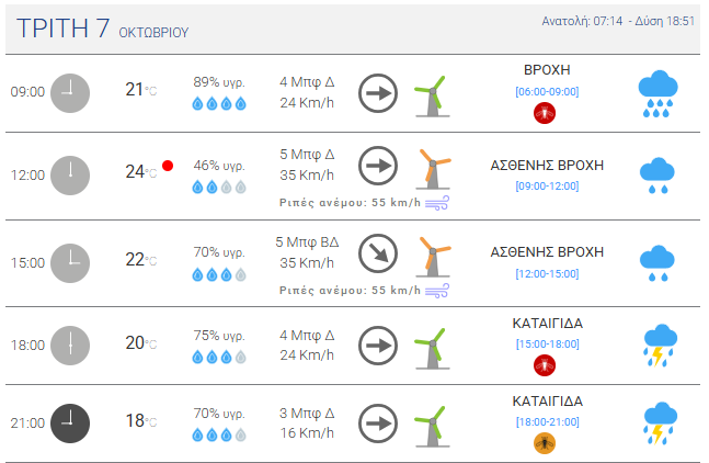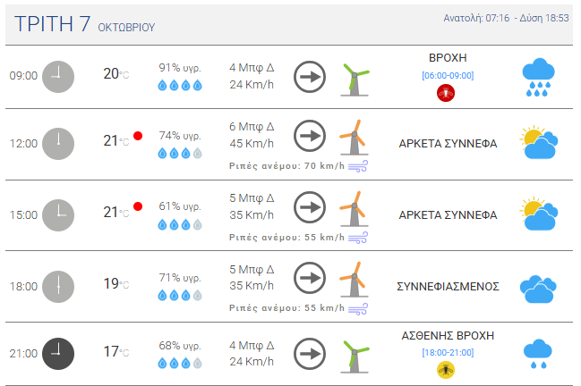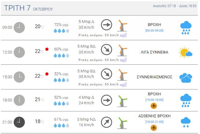 Δείτε αναλυτικά στους πίνακες του Meteo τις ώρες που θα βρέχει στις 6 μεγαλύτερες πόλεις της Κρήτης:
