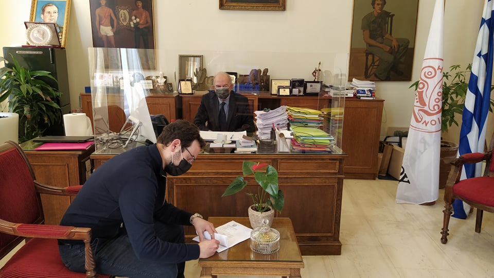 Υπεγράφη η σύμβαση για την «Συντήρηση Δημοτικών Κτιρίων» χθες, Δευτέρα 12 Απριλίου, στη Λότζια. Την σύμβαση υπέγραψε ο Δήμαρχος Ηρακλείου Βασίλης Λαμπρινός, με τον εκπρόσωπο της αναδόχου εταιρίας, παρουσία του Αντιδημάρχου Τεχνικών Έργων Γιάννη Αναστασάκη.