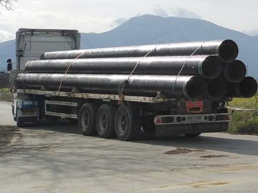 Χθες Δευτέρα έγινε η άφιξη του γερανοφόρου οχήματος και μεγάλες πλατφόρμες μεταφέρουν στο οροπέδιο Λασιθίου τους αγωγούς μήκους 11 μέτρων ο καθένας στις εγκαταστάσεις του εργοταξίου στον Άγιο Γεώργιο.