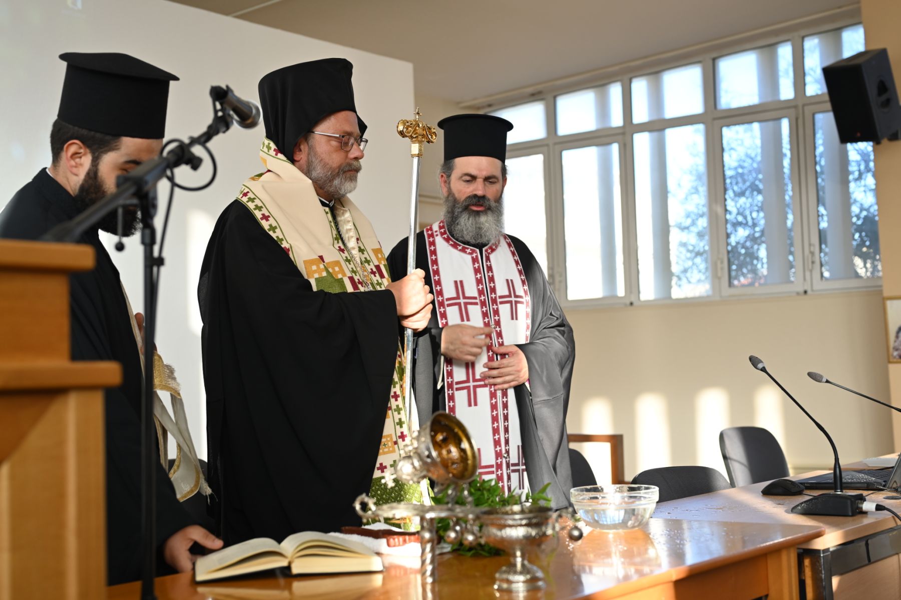 Πριν από τις εργασίες της πρώτης ημέρας του Συμποσίου τελέστηκε ο Αγιασμός για την έναρξη του νέου ακαδημαϊκού έτους, με την κανονική άδεια και προτροπή του Σεβ. Αρχιεπισκόπου Κρήτης κ. Ευγενίου, από τον Σεβ. Μητροπολίτη Σελευκείας κ. Θεόδωρο.