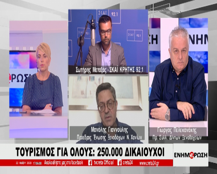 Στο ερώτημα αν ο εγχώριος τουρισμός μπορεί να σώσει την παρτίδα, ο Πρόεδρος της Ένωσης Ξενοδόχων Νομού Χανίων, απάντησε: «Πέρυσι οι αφίξεις από το εξωτερικό ήταν 1.150.000. Οι Έλληνες ήταν 70.000-80.000. Επομένως, μιλάμε για μια συμπληρωματική αγορά. Αν αντίστοιχος αριθμός Ελλήνων ταξιδέψει και φέτος κι αν βοηθήσει το περίφημο voucher 250.000 δικαιούχους, σίγουρα θα ενισχυθεί η σαιζόν, αλλά δε θα λυθεί το πρόβλημα».