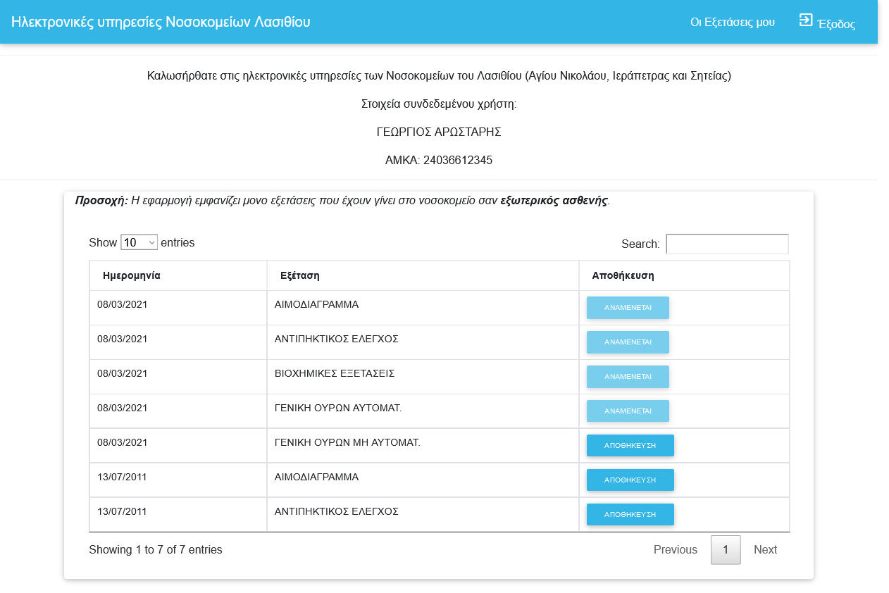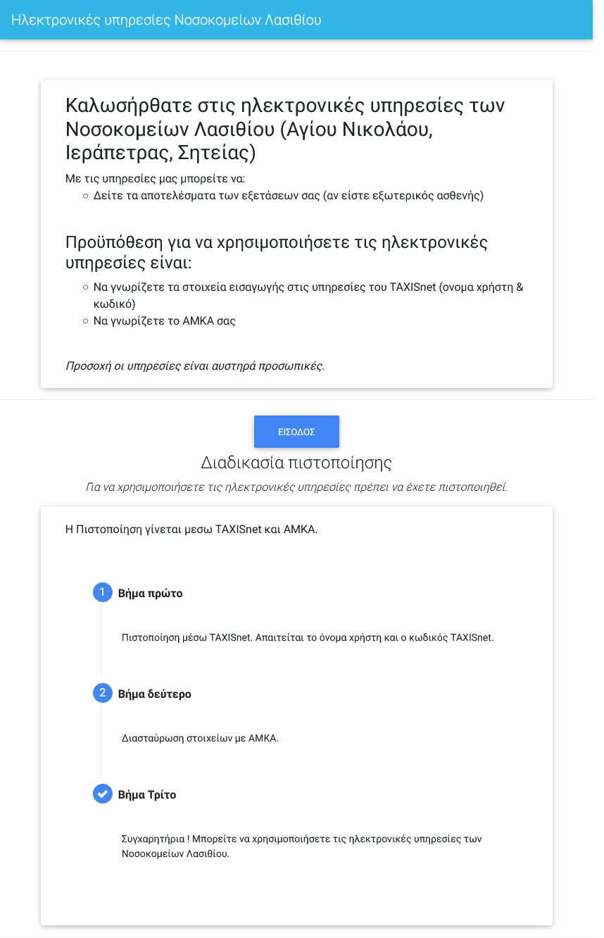 Η πρόσβαση για το νοσοκομείο Αγίου Νικολάου, μπορεί να γίνεται μέσω την διεύθυνσης: “e-apotelesmata.agnhosp.gr”