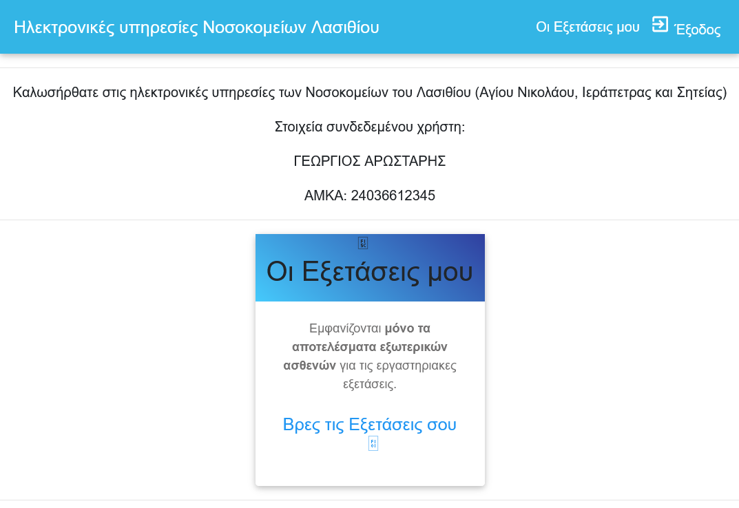 Στο πλαίσιο της συνεχούς αναβάθμισης των παρεχόμενων υπηρεσιών, το Γενικό Νοσοκομείο Λασιθίου ξεκίνησε την υλοποίηση της δυνατότητας των ασθενών να λαμβάνουν ηλεκτρονικά τα αποτελέσματα των εξετάσεων τους, οποιαδήποτε μέρα και ώρα του 24ώρου, χωρίς να είναι ανάγκη να περιμένουν ή να επισκεφθούν ξανά το νοσοκομείο.