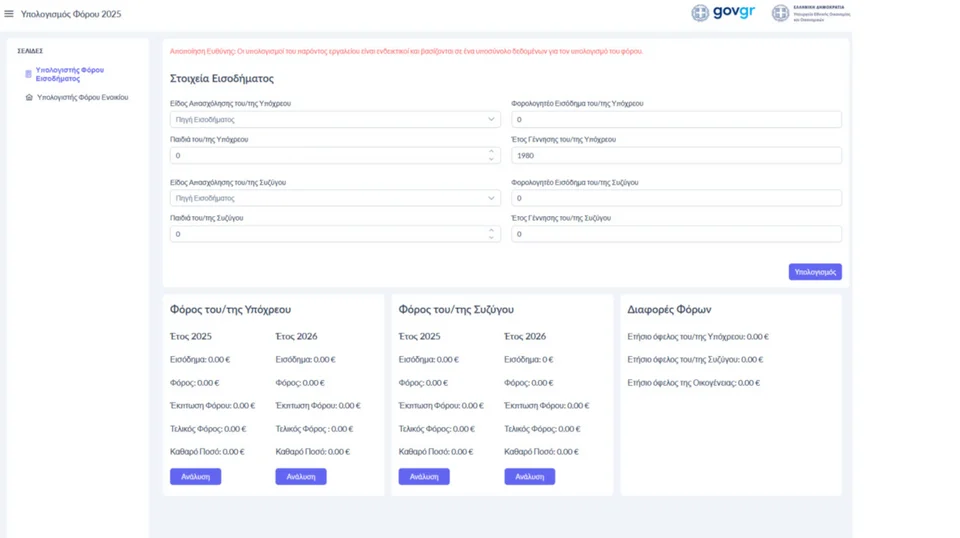 Σε λειτουργία η εφαρμογή μέσω της οποίας οι φορολογούμενοι μπορούν να υπολογίσουν τα οφέλη που προκύπτουν από τη φορολογική μεταρρύθμιση για το δημογραφικό και τη μεσαία τάξη.