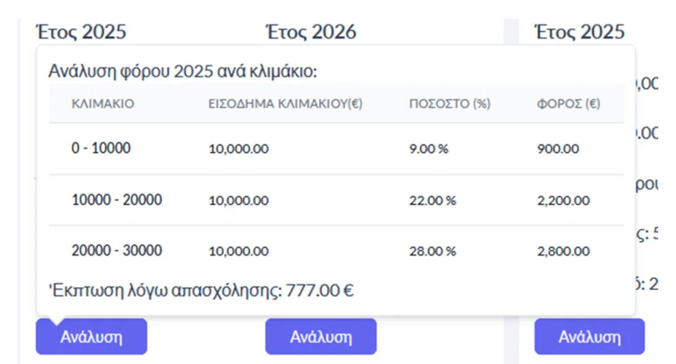 Οθόνη 3: Ανάλυση Κλιμακίων Φόρου Εισοδήματος